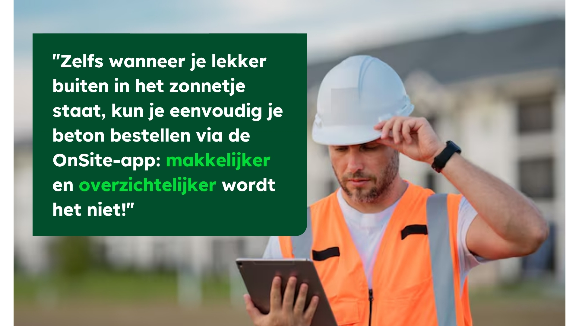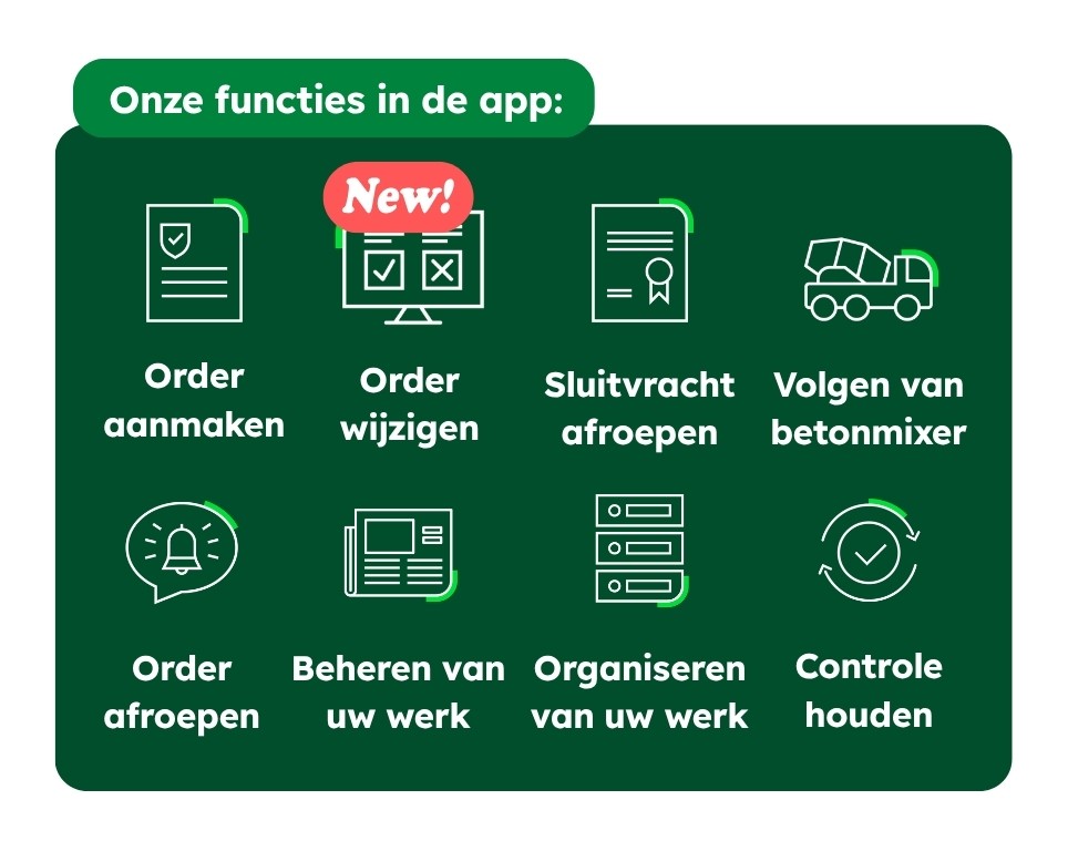OnSite is onze mobiele applicatie waarmee u uw leveringen kunt beheren en opvolgen, zonder dat u hoeft te bellen naar het kantoor. Op een bouwplaats weet u het als geen ander: elke stap moet perfect op elkaar aansluiten, maar u moet ook snel kunnen inspelen op veranderingen. Weten wanneer uw beton precies geleverd wordt is cruciaal om de rest van de werkzaamheden te coördineren.
